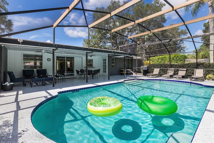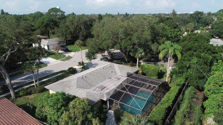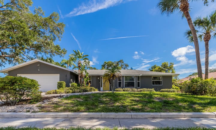A 3 km de Crescent Beach. Casa Concord, moderna y contemporánea piscina de agua salada, planta dividida en un barrio extremadamente tranquilo. El exuberante paisaje te hace sentir como en un oasis de resort tropical. A minutos de la playa # 1 Siesta Key (4 millas), restaurantes elegantes, tiendas y vida nocturna. Haz las maletas y crea muchos recuerdos inolvidables con tu familia o amigos.