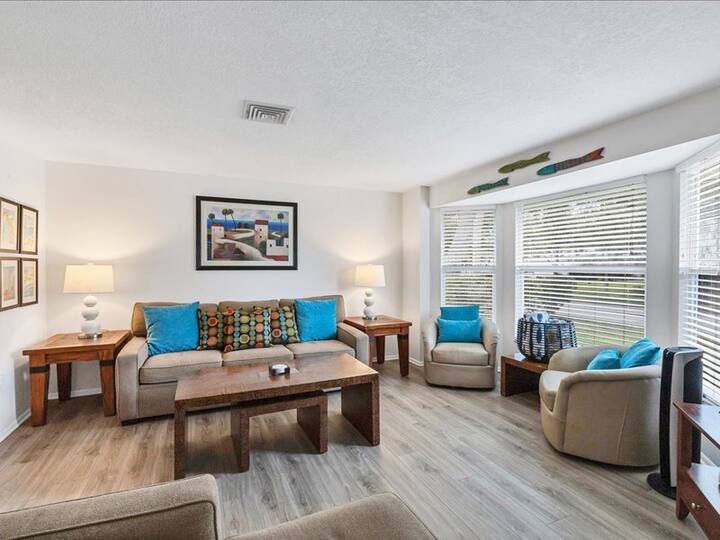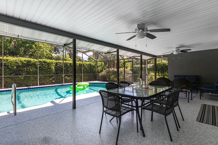 Casa Concord es todo el paquete. Con actualizaciones recientes en toda la casa hay pisos de tablones de vinilo de lujo, pintura exterior, pintura interior, azulejos de cerámica nuevos del baño principal y la terraza de la piscina y las zonas de patio recién renovadas. Inodoros nuevos con altura de silla en ambos baños. El alojamiento tiene capacidad para 6 personas. Tu propia piscina personal de agua salada rodeada de exuberantes jardines crea aislamiento y privacidad. Pasa tus días relajándote alrededor de la piscina de agua salada de 15'x30' con una terraza de piscina y un lanai/ patio totalmente protegidos. El área de Lanai tiene una sala de estar al aire libre para 6 personas bajo un área cubierta techada. El área de comedor al aire libre también tiene 6 asientos. Barbacoa en la parrilla de gas. (Disfruta del sol en una de las cuatro tumbonas ajustables. Relájate, restaura y rejuvenece.