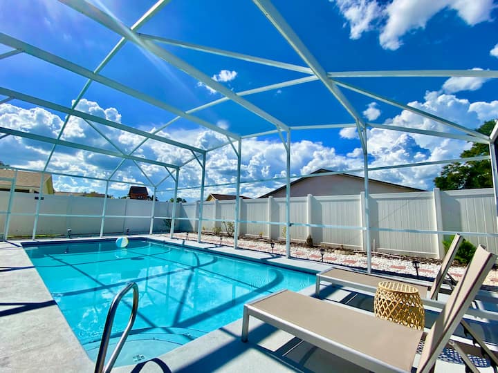 Increíble piscina privada azul • Casa de 4 dormitorios cerca de Disney