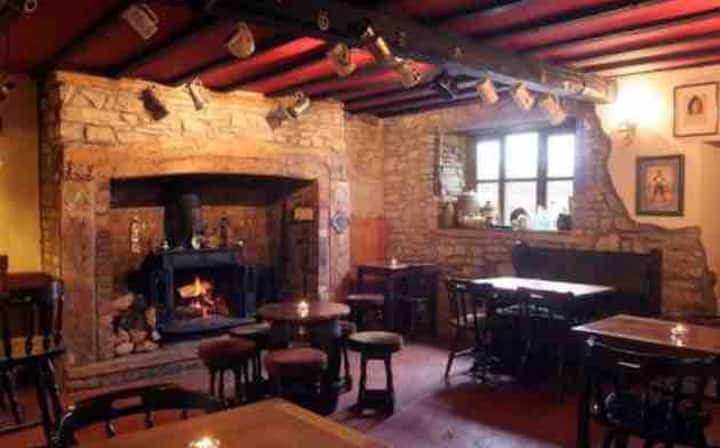 Habitación doble privada con baño en una acogedora posada de campo de 1680