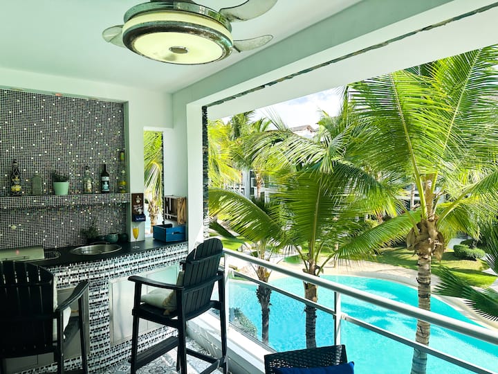 Entre las características únicas que posee incluyen Una increíble terraza con bar, BBQ eléctrico y todos los accesorios para cócteles que necesita para disfrutar de un día perfecto con su familia y amigos mientras disfruta de un rico cóctel tropical disfrutando de buena música y la espectacular vista de las piscinas y el jardín tropical. ¿Podría ser la vida mejor?
