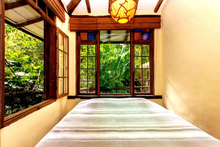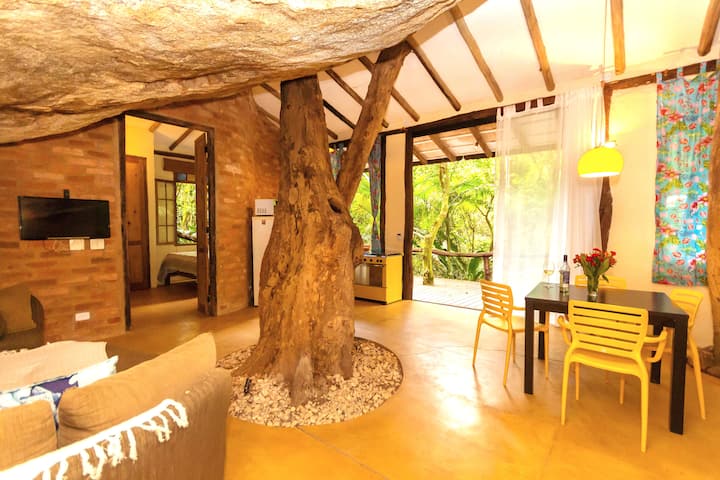 Cabaña de lujo con aire acondicionado, cocina y piscina natural