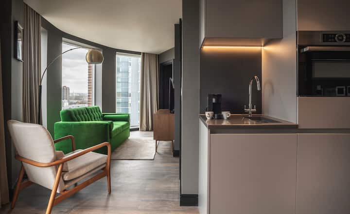 The Gate London City es un apartotel boutique de 20 pisos en Aldgate East, que ofrece 189 elegantes estudios y apartamentos, muchos con vistas a la ciudad. Combinando la flexibilidad del departamento con el servicio de hotel, The Gate está hecha para viajeros modernos en estadías cortas o largas. Todas las habitaciones cuentan con cocinas equipadas, máquinas Nespresso, comodidades de Le Labo y elegantes salas de estar. Los huéspedes pueden disfrutar de un salón en el quinto piso con bar y terraza, además de un gimnasio las 24 horas, los 7 días de la semana.