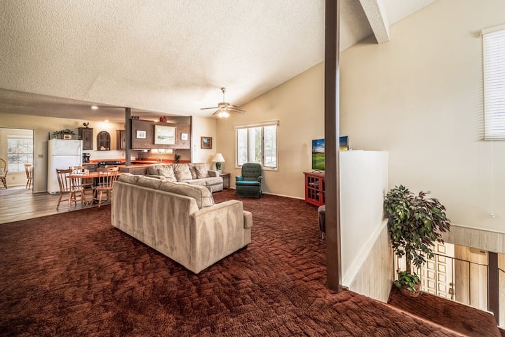 ¡"Mantente por encima de la par" en Tee to The Green! Ubicada frente al campo de golf Links, esta casa única ofrece vistas a la vida silvestre de alces, ciervos y caballos salvajes. Con dos salas de estar y un jacuzzi, este refugio de 2300 pies cuadrados es perfecto para reuniones familiares. La planta baja tiene fácil acceso, mientras que arriba disfrutarás de una cocina totalmente equipada y un solárium con excelentes vistas. La calefacción central y el aire acondicionado garantizan la comodidad durante todo el año.