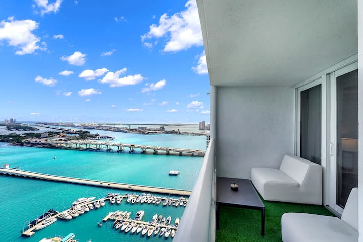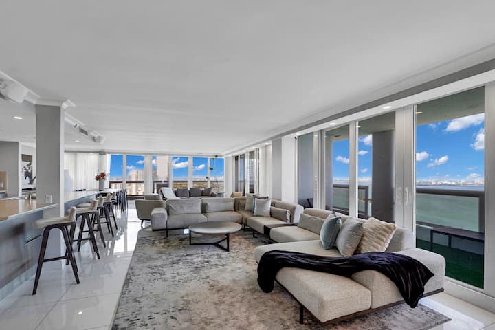 Bluewater Realty Miami le da la bienvenida a The Grand, en el centro de Miami Biscayne Bay. ¡Nuestro penthouse de 3 dormitorios de 3000 pies cuadrados por encima de todo! Es el refugio definitivo, con todo lo que necesitas. Disfruta de impresionantes vistas panorámicas al agua. Es lo mejor de ambos mundos con South Miami Beach a 3 millas de distancia, mientras también disfrutas del centro de Miami.