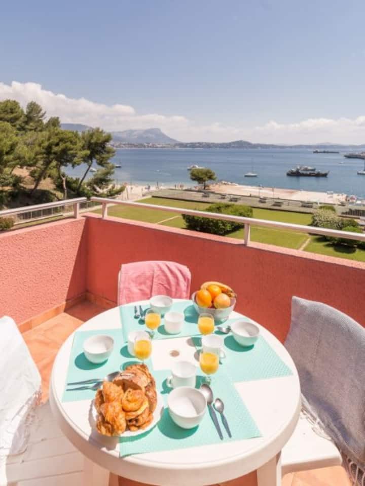 Frente a la playa en St Mandrier con todas las comodidades