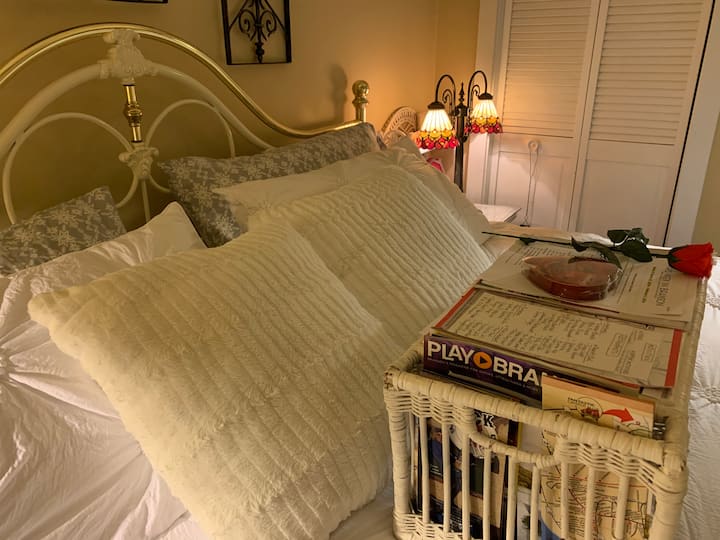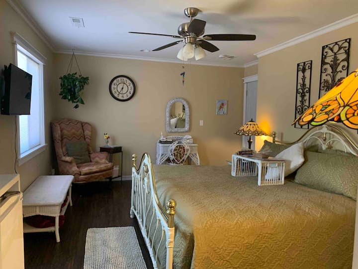 Hola: Me llamo Michael Quinnelly. Mi esposa, Janine y yo nos retiramos a la hermosa zona de Branson, Missouri, hace unos años. Cuando queríamos tiempo para una escapada rápida y relajante en pareja o para entretenernos, visitábamos a Branson con frecuencia como nuestro regalo de vacaciones para nosotros. Solíamos decir constantemente: " Algún día, cuando nos jubilamos, ¿no sería maravilloso mudarnos a nuestro lugar de escapada favorito?". Bueno, aquí vamos a dar un círculo completo en nuestro viaje de vida matrimonial...desde nuestro lugar de luna de miel hasta nuestro lugar de jubilación. También mi esposa creció en un negocio familiar de moteles, así como en un negocio familiar de restaurantes y había trabajado en el negocio de moteles durante años. Siempre tuvo su sueño de ser dueña de su propio bnb o alquilar una suite. En una oportunidad "fortuita" pudimos cumplir nuestros dos sueños. Como decimos constantemente: « La vida no es mejor que esto.“ Gracias por compartir nuestra alegría.