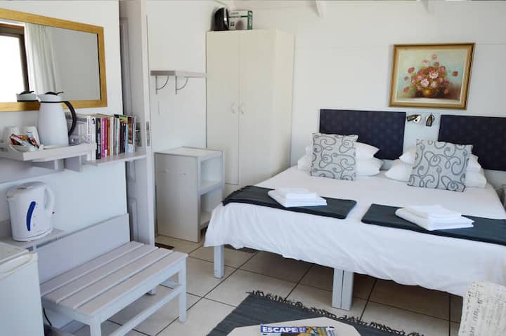 Mi esposo, Michael, y yo hacemos toda la limpieza y preparación para nuestros huéspedes. Vivimos en la misma propiedad . Somos saludables y extrovertidos y disfrutamos de la interacción con nuestros huéspedes, que a menudo se convierten en nuestros amigos. Somos ciudadanos sudafricanos con los pies en la tierra: soy pianista /clarinete/saxofonista y nos encanta el estilo de vida en el que nos hemos instalado en nuestro pueblo. Nuestro lema familiar: ESTÁ SEGURO