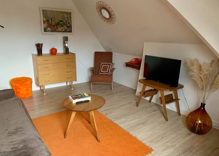 Adepto al vintage, ya sea muebles, objetos o máquinas a motor, quise recrear este ambiente de los años 70.