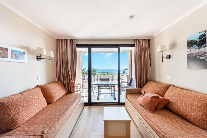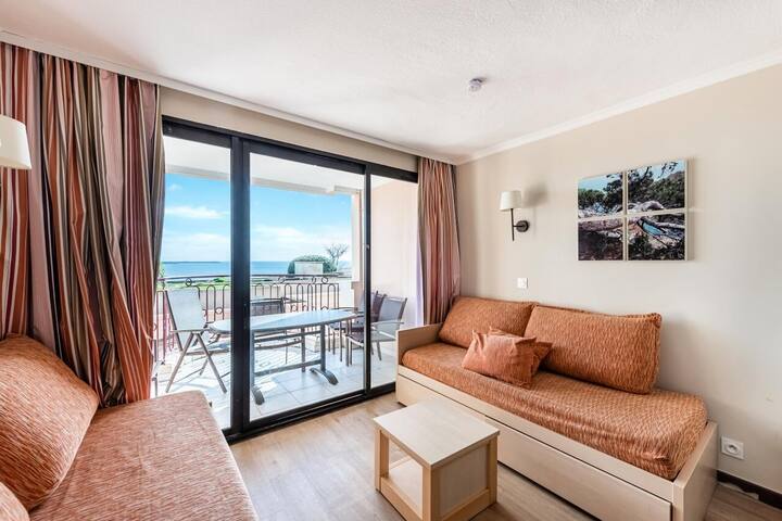 Cette résidence vous accueille dans un jardin verdoyant avec une vue panoramique sur la mer. Vous pourrez profiter de la belle piscine à débordement de la résidence ouverte d'avril à mi-octobre (transats disponibles en supplément) et de la plage située à 800m.