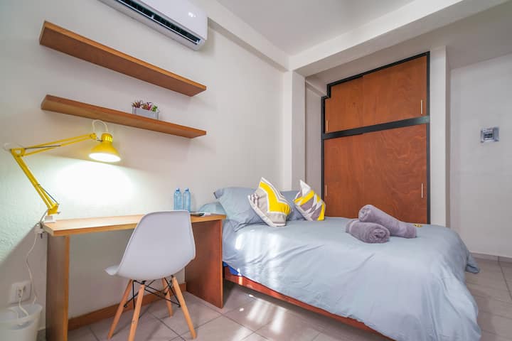 Una habitación con wifi que es ideal para trabajar.