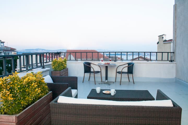 Piso con terraza y vistas al mar en Gálata