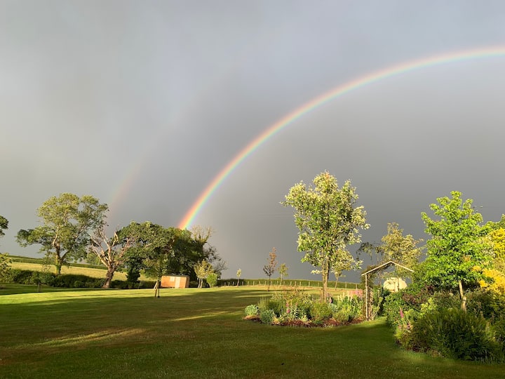 Estamos encantados de compartir contigo nuestra casa y no dudes en recorrer nuestros jardines y 39 acres de pequeña propiedad, pero cierra todas las puertas detrás de ti o esos molestos corderos estarán fuera.