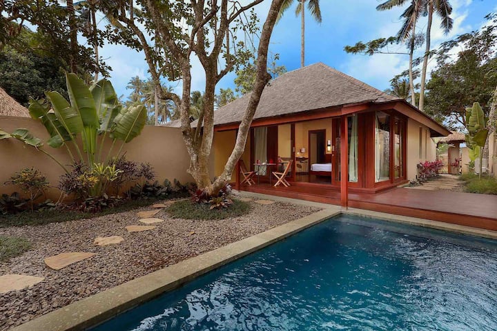 Villa con piscina privada en la naturaleza y bañera en Ubud