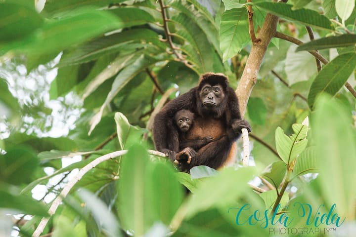 Nuestra zona es exuberante y verde durante todo el año y las montañas llegan hasta el océano, por lo que, a pesar de que nuestra carretera está a 2 kilómetros de la montaña, ¡estamos a solo 5 minutos de la playa más cercana! Hay muchas actividades para llenar tus días... surfear, snorkel, natación en piscinas claras en cascada, tirolesa, paseos a caballo, tours en todoterreno, kayak, observación de aves, tours de parques nacionales y ¡mucho más! O puedes pasar el rato junto a la piscina, relajarte y recargar energías.