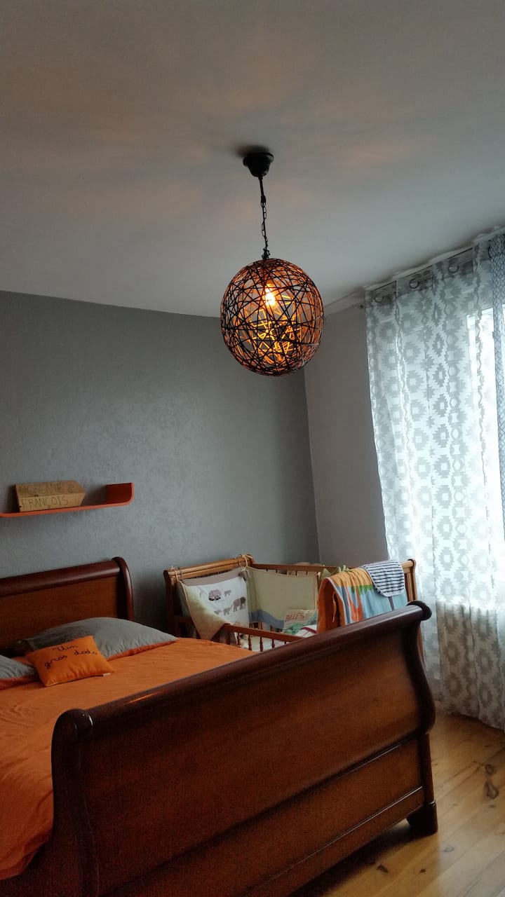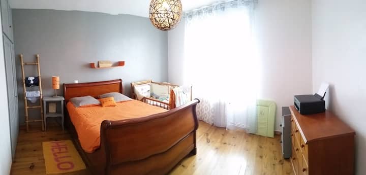 Habitación doble + cuna + baño compartido a 5 minutos del mar