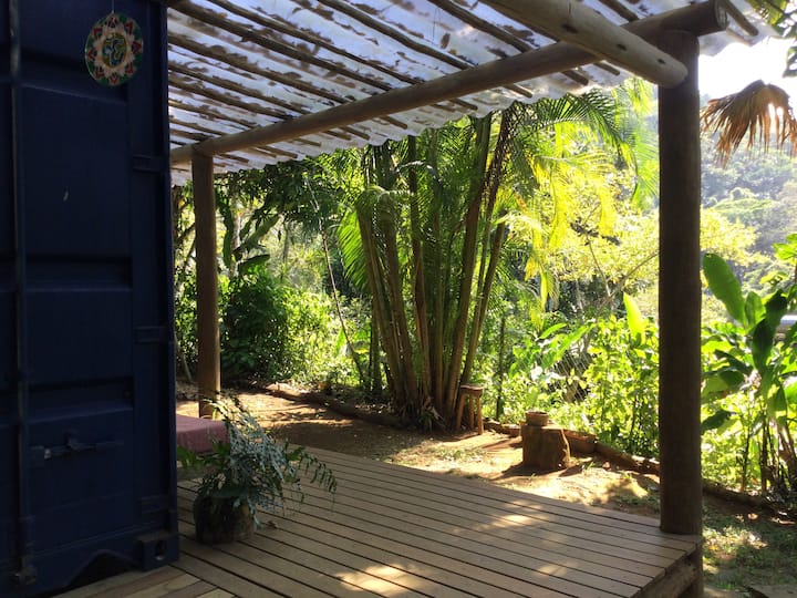 Casa de contenedores rodeada por el bosque al sonido del mar