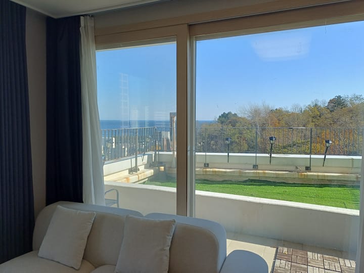 * Oferta especial para estancias largas en Blue Terra, Sokcho. Suite con vista al mar #1 Terraza Jardín A 5 minutos a pie de la playa de Sokcho