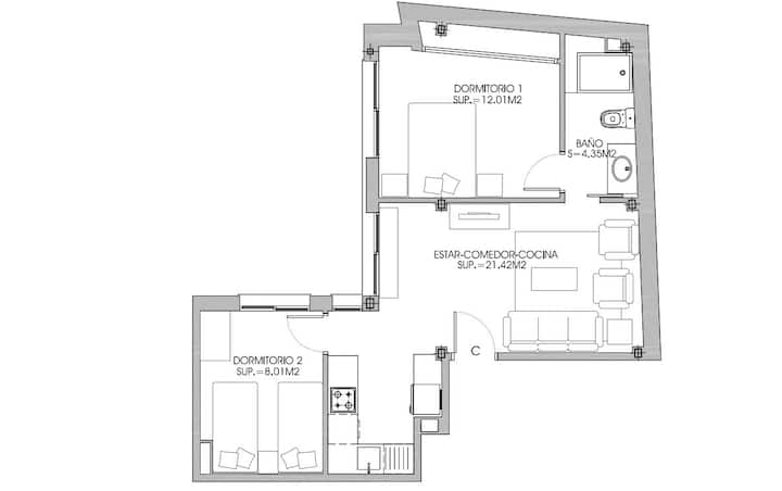 - 2 habitaciones