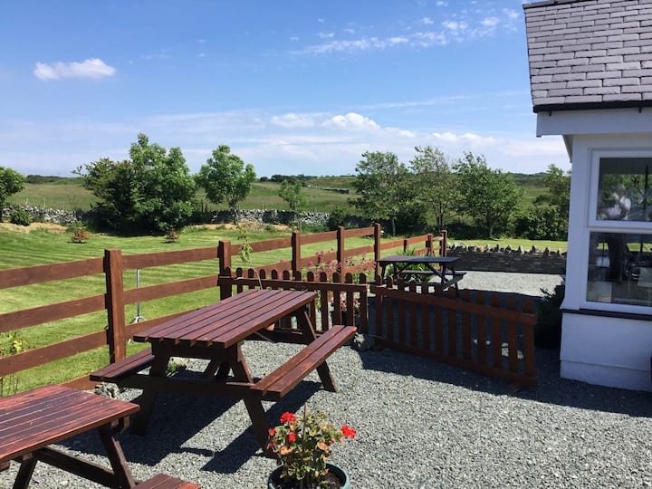 Si sueñas con cenar al aire libre disfrutando de una puesta de sol mágica rodeada de nada más que vistas, entonces has encontrado tu destino de vacaciones perfecto. Incluso si hay un ligero pinchazo en el aire, el solárium recién añadido, con luz entrando por las enormes ventanas, te hará sentir que todavía estás afuera. Baja a la playa de Rhoscolyn (conocida localmente como Borthwen) justo al final de la carretera para que puedas ir a comprar cangrejo, langosta o pescado fresco y regresar para asar a la parrilla los bocados que has comprado en la gran chimenea al aire libre en el prado privado... O simplemente abre las puertas del patio a tu área de patio privado para dejar entrar las vistas cuando las noches son calurosas. Las vistas son realmente espectaculares desde tu propio mirador privado.