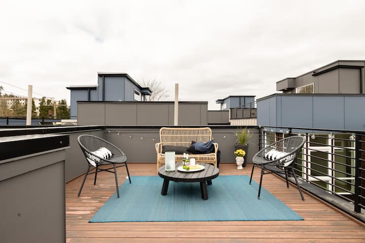 Moderna casa adosada en Lake Union con terraza privada en la azotea