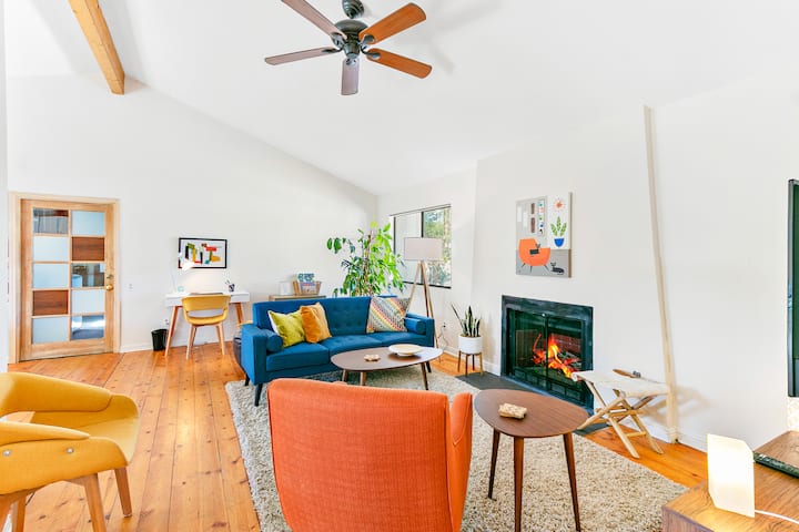 Al entrar en el alojamiento, sentirás al instante el ambiente de Palm Springs. Los colores vibrantes de la decoración, además de los detalles de la palma, proporcionarán el escenario perfecto para la relajación. Una cocina totalmente equipada con una estufa de gas ofrece una gran experiencia culinaria para el chef de tu grupo. Con asientos cómodos en la sala de estar, reúnete alrededor de la chimenea y ve una película, lee un libro o juega.