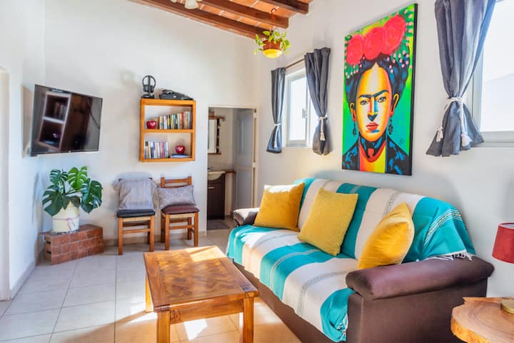 Montana Suite es la lujosa suite ático de 2 dormitorios en Suites de Mita-Boutique Hotel. Tiene una gran habitación colorida y espaciosa: un jardín interior, una sala de estar y una cocina de concepto abierto. Los dos dormitorios y la sala de juegos están contiguos, pero separados de la Gran Habitación. Los dos dormitorios tienen comodidad separada de aire acondicionado cuando es necesario. Esta suite tiene internet de fibra óptica 5G para un fácil trabajo remoto. La suite Montana colinda con las áreas de barbacoa/palapa del hotel para cocinar, disfrutar o ver en la palapa.