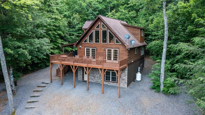 Vivimos en el sur de Florida, pero hemos vacacionado en Carolina del Norte durante 20 años. Finalmente compramos 10 acres y construimos 3 cabañas a solo 20 minutos de Asheville. Tratamos de llegar a Carolina del Norte tanto como sea posible, pero cuando no estamos allí, alquilamos nuestras cabañas a otras familias que viajan para disfrutar de las hermosas Carolinas occidentales. Se admiten mascotas.