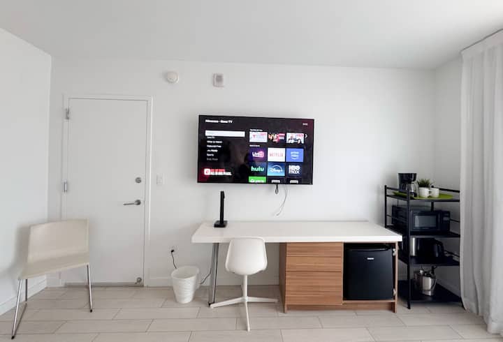 Para mayor comodidad y entretenimiento, el estudio está equipado con TV y televisión por cable. Ofrecemos una cuna para bebés, previa solicitud, que se puede colocar según sea necesario. Nuestro lujoso estudio en Hallandale Beach se encuentra en uno de los mejores condominios-hotel de Hallandale Beach, BeachWalk.