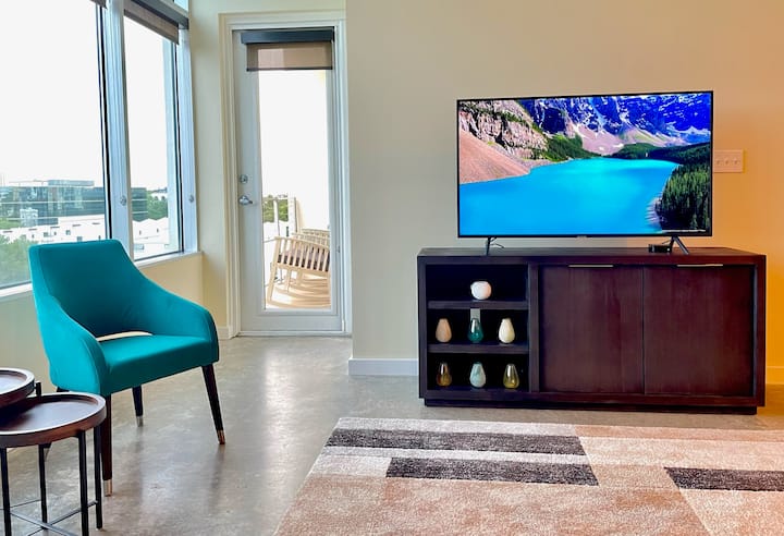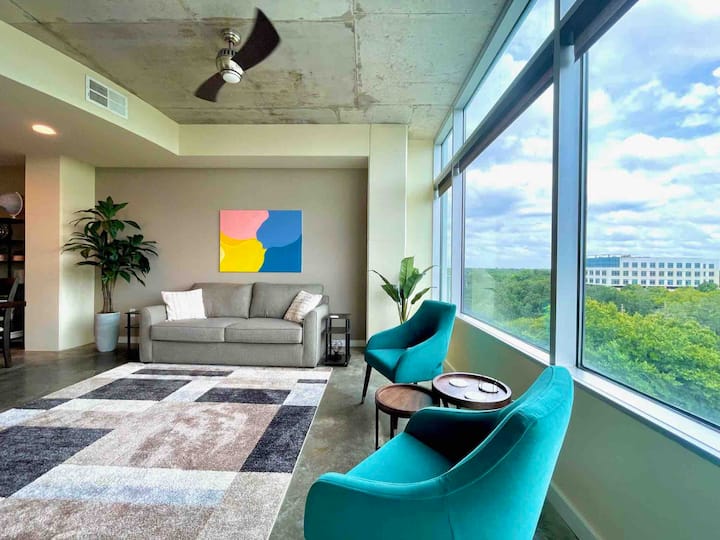 Apartamento en el centro con vistas a las copas de los árboles y carga EV