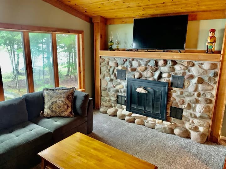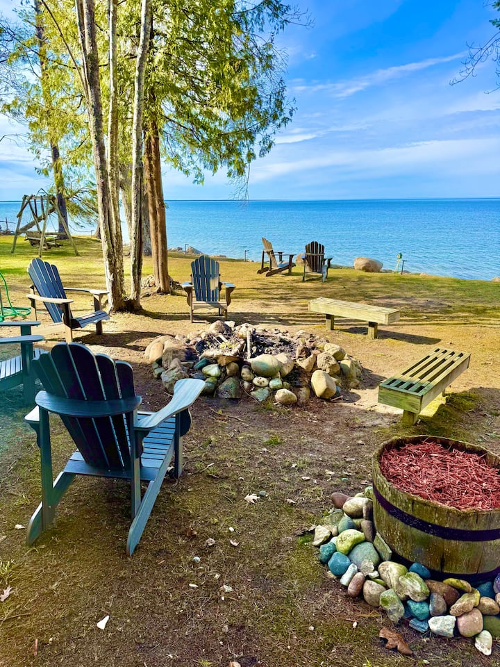 Cabaña en el lago Huron con chimenea