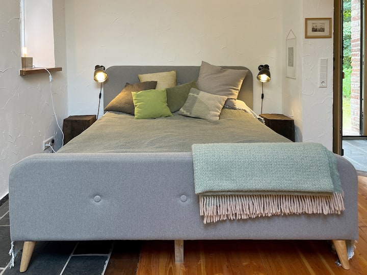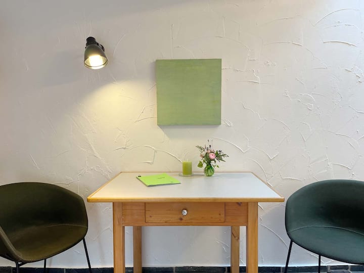 Hola, solo viví en Detmold desde abril de 2023 y aprendí a amar a la gente y al paisaje de inmediato. En nuestro gran jardín, pruebo la permacultura. También ofrecí clases de yoga yin en mi encantadora sala de yoga. De nada, los huéspedes son de bienvenida