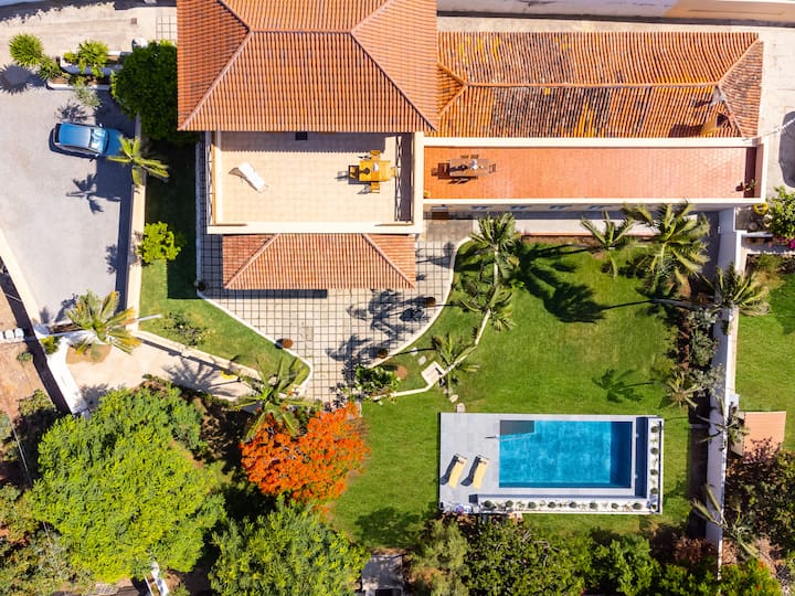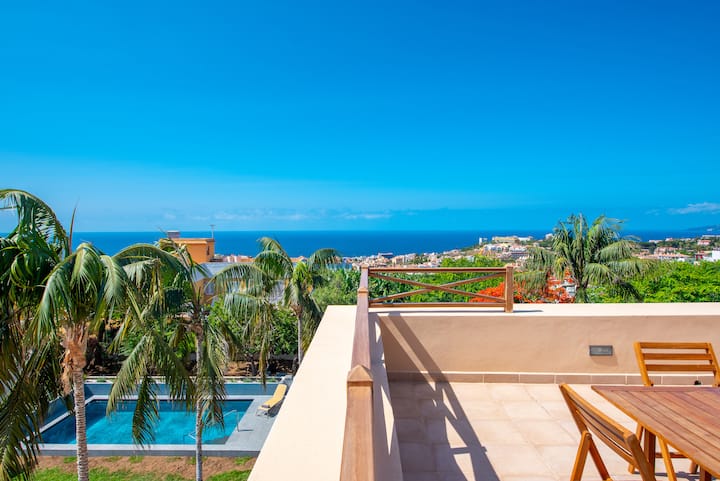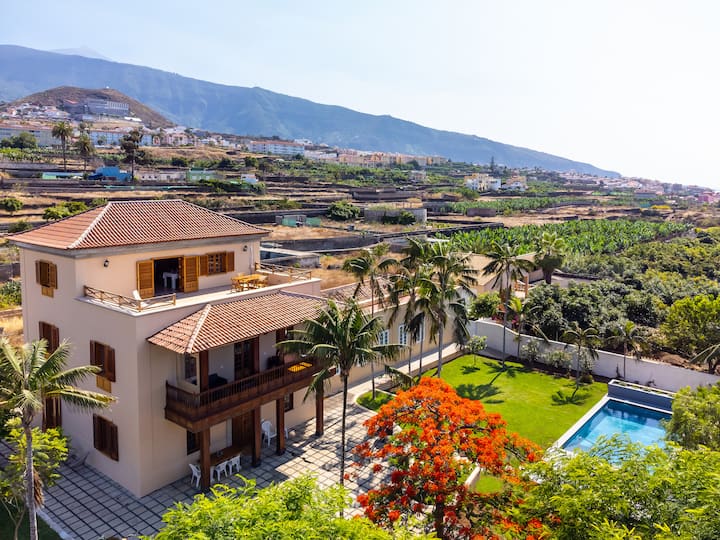 Piscina climatizada, plantación de plátanos, vista 360º del puerto