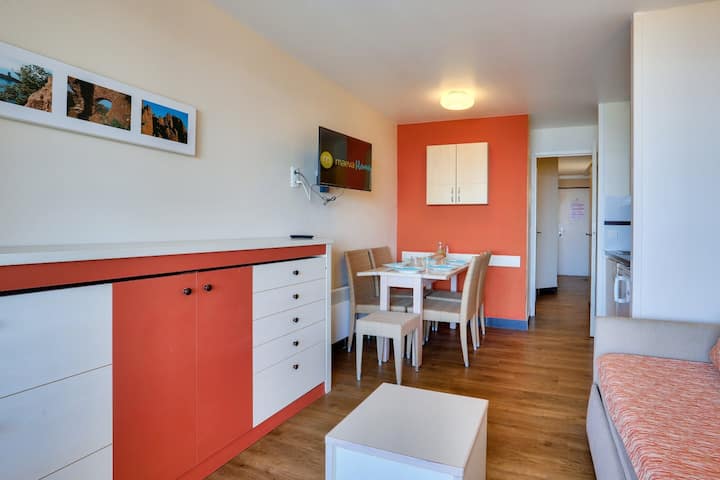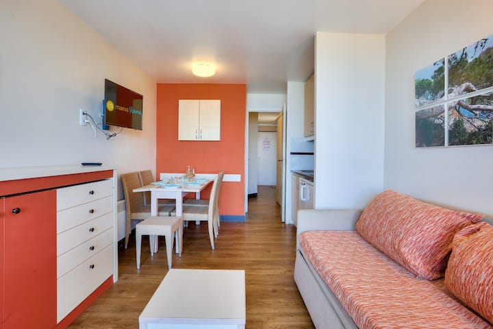 Puedes disfrutar de la hermosa piscina infinita de la residencia (las sillas están disponibles, no administradas por maeva, sino por una empresa externa, además, los precios de búsqueda en el lugar, la piscina sin calefacción abierta desde el 4 de abril hasta el 2 de noviembre) y la playa ubicada a 800 m de distancia.