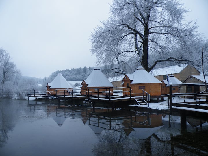 Después de recibir a muchos niños durante las visitas a la granja, decidimos construir 4 kotas finlandeses,saami,lapon y vikingas, así como un kotagrill para recuperar el contacto y la amabilidad de las habitaciones de huéspedes