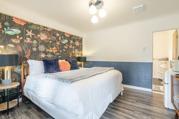 ¡Te damos la bienvenida al motelb.side +autocaravana! Nuestro objetivo al comprar este histórico Motel & RV Park en 2021 era traer algo que no se encuentra a menudo en la costa de Oregón, un poco de lujo de alta gama sin la congestión. Y como amantes de los perros, lo primero que hicimos fue hacer que todo el lugar también fuera apto para perros. Queremos que duermas mejor que en casa, por lo que nuestras camas, sábanas y almohadas son de la más alta calidad posible, y como viajeros particulares, tratamos de pensar en todos los lujos disponibles, por lo que estamos remodelando las habitaciones y trayendo cosas como pieles veganas, jabones sostenibles, bidés en todos los baños, cabezales de ducha de mano con una presión de agua impresionante, televisores con 1200 canales y todas las películas, mercancía personalizada y, por supuesto, lo que tu dulce perro pueda necesitar para sentirse como en casa con los humanos. Por favor, permítenos darte la bienvenida al b.side motel+autocaravana. ¡Es un absoluto placer tenerte!