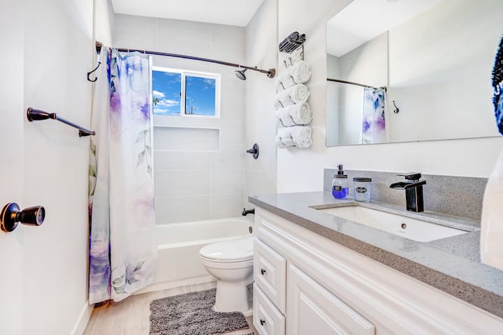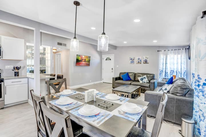 Totalmente remodelado, ajardinado, camas tamaño king, espacio de escritorio.