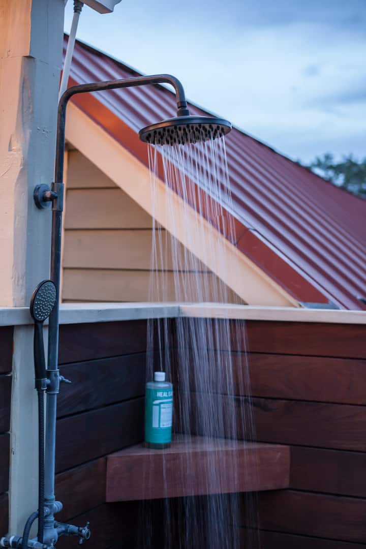 Relájate con una ducha exterior y un jacuzzi.