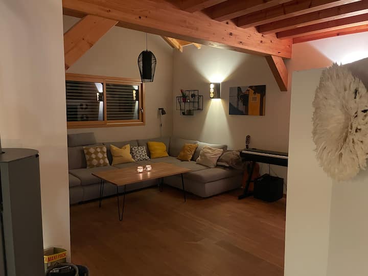 Archamps: acogedora villa con chimenea y vistas