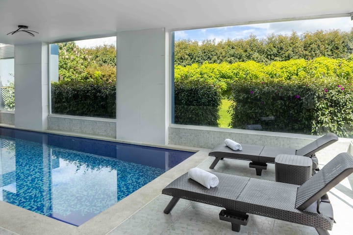 Hacienda Lujo cerca a Bogotá: Piscina+ 5 Minicasas