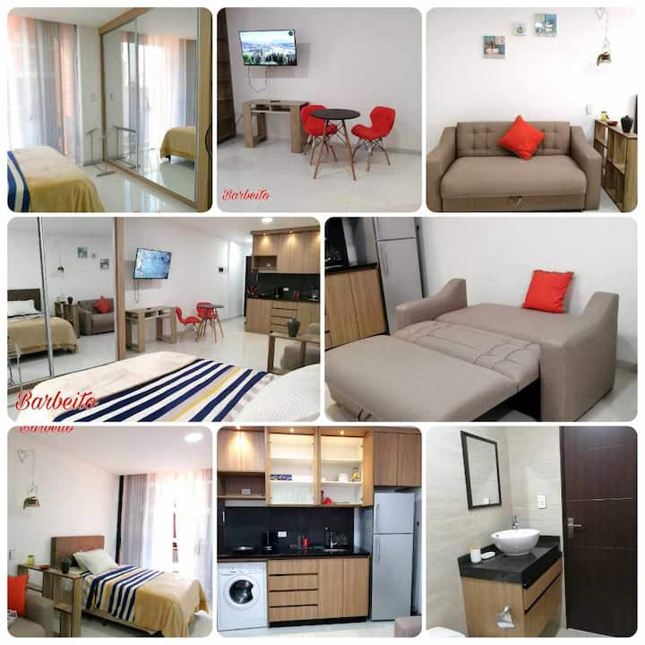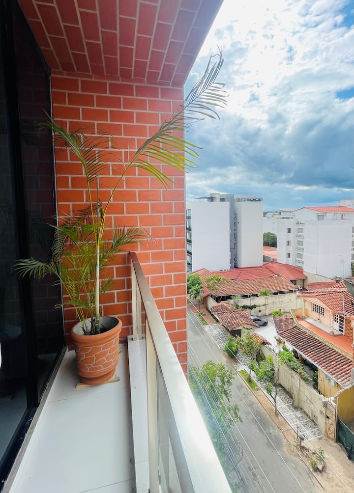 Bonito departamento céntrico con balcón y piscina.