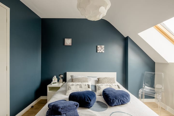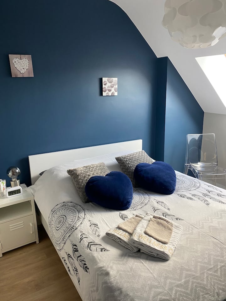 Somos una familia con tres hijos nacidos en los años 2000, 2002 y 2009. Nos gusta recibir, pero también ser bien recibidos. Nuestra perrita Miya de raza jinete King Charles nos acompaña a menudo. Nos vemos en su casa o con nosotros en Carquefou.