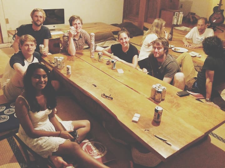 Earth Hostel: el arreglo de la casa del río es social para que todos se conozcan, exploren Nikko y se diviertan.