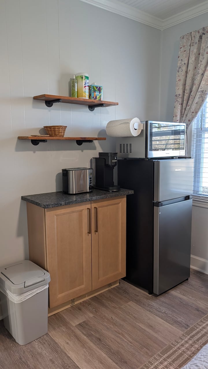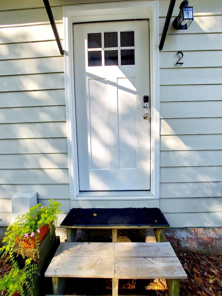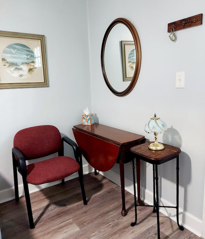 A mi esposo y a mí nos encanta pescar. Estamos relajados y en silencio. Estamos abriendo el otro lado de nuestra casa para los huéspedes que visitan Wilmington, un corto viaje de negocios. Nuestra habitación NO está preparada para un lugar de trabajo remoto.