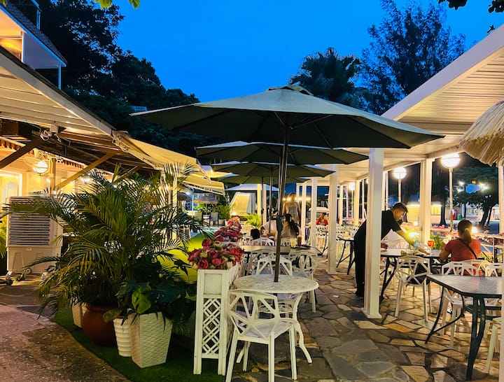 Con vista a la playa y al jardín
