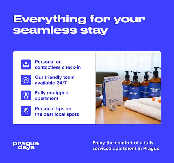 En Prague Days, creemos en reconocer caras familiares, dar la bienvenida a otras nuevas y tratar a cada huésped como un amigo. Desde una llegada conveniente y flexible hasta una lista cuidadosamente elaborada de recomendaciones de lugares para ver y visitar, agregamos un toque personal a todo lo que hacemos por los huéspedes. Desde 2016, alojamos a decenas de miles de huéspedes felices y cada día nos esforzamos para que tu estadía en Praga sea memorable.