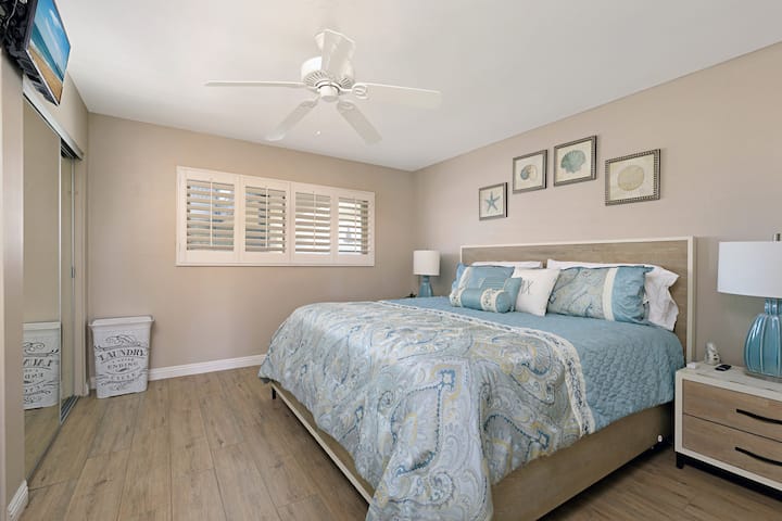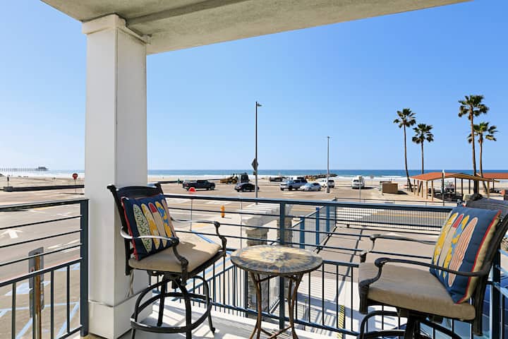 Disfruta de una vista impresionante del océano Pacífico desde este hermoso condominio frente a la playa de 1 cama/1 baño en Marina Del Mar, Oceanside, CA. La unidad de esquina del segundo piso es perfecta para ver surfistas y puestas de sol. Da un corto paseo hasta el puerto para disfrutar de restaurantes y actividades acuáticas. La unidad incluye juguetes de playa y sillas para un día divertido en la arena y el agua. Por la noche, descanse cómodamente en la cama tamaño king o en el sofá cama doble.