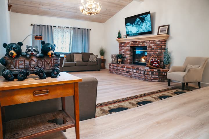 Crea recuerdos vacacionales memorables en esta espectacular escapada a la montaña en La Casa de La Montana. Esta hermosa cabaña de una planta con tres dormitorios y dos baños es una hermosa propiedad para que familiares y amigos pasen tiempo juntos en el deseable corazón de Big Bear Lake. Dentro de esta casa cuentas con espacios amplios y luminosos y muebles cómodos. Después de un largo día explorando Big Bear, ya sea desde el lago, las pistas, las rutas de senderismo, el esquí o incluso simplemente explorando la ciudad, relájate junto a la chimenea o en el patio trasero. Nuestra cabaña tiene dos chimeneas de gas para tu disfrute y dos salas de estar.