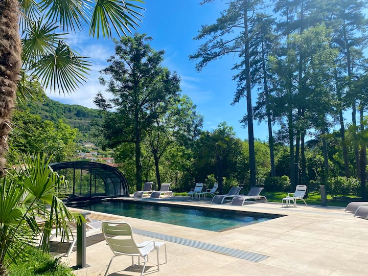 En la finca, descubrirá espacios de jardín orgánico y naturaleza, una hermosa piscina ( abierta del 1 de mayo al 30 de octubre ) , sauna (con reserva de franjas horarias), spa privado para algunas casas rurales ,zona de relajación y un parque infantil al aire libre para los más pequeños..