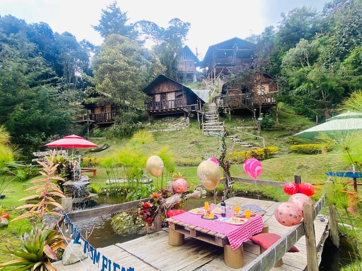 9. Cabaña/balcon/vista a la montaña/baño privado
